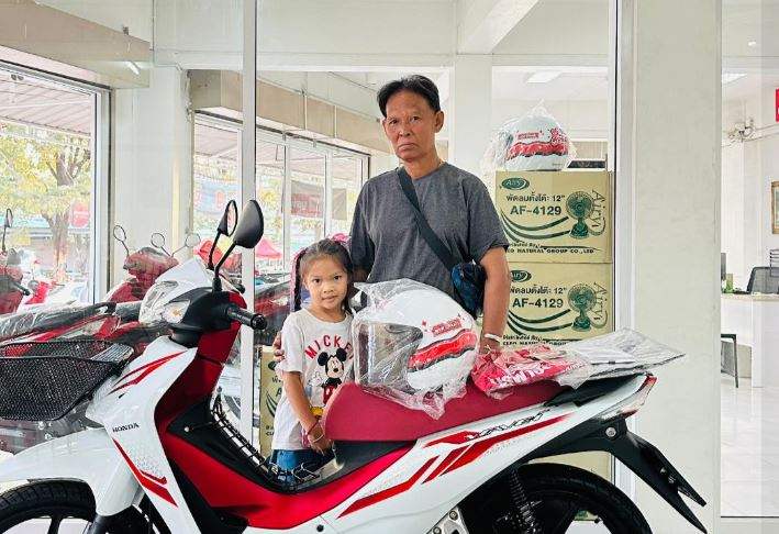 เมื่อนำเงินไปซื้อรถจยย.ที่ร้านบูรพาฮอนด้า สาขาบ้านโคก พนักงานที่ร้านก็รู้สึกประทับใจในความกตัญญูของน้อง จึงตัดสินใจแถมเงินให้ 500 บาท เป็นขวัญถุงไว้ออมเงินต่อ พร้อมของแถมอีกมากมาย