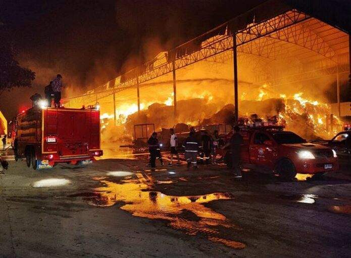 ขณะนี้เพลิงอยู่ยังระหว่างลุกไหม้วัตถุดิบ ที่เป็นกองกระดาษอัดแท่ง ซึ่งยังไม่สามารถดับเพลิงให้สนิทได้ เจ้าหน้าที่ดับเพลิงและหน่วยงานบรรเทาสาธารณะภัยยังเดินทางเข้ามาระงับเพลิงในครั้งนี้อย่างต่อเนื่อง