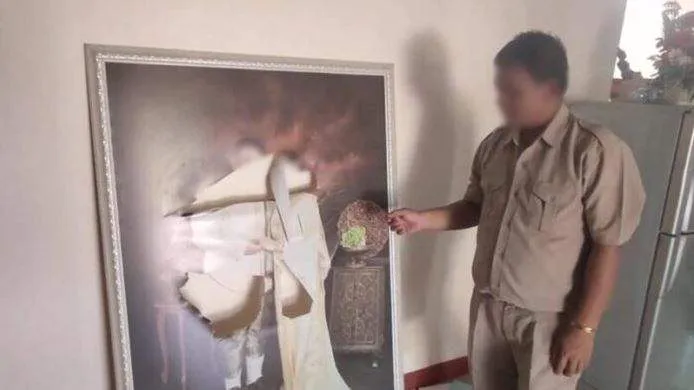 เมื่อไปถึงพบรั้วบ้านถูกงัดเป็นรูโหว่ ประตูบ้านถูกทุบพัง ภายในบ้านถูกรื้อค้นกระจุยกระจาย ทรัพย์สินข้าวของถูกทุบทำลายพังเสียหายเกลื่อน ภาพแต่งงานขนาดใหญ่ที่ติดอยู่ผนังถูกกรีดเป็นทางยาว ทีวีถูกลากมาต่อกับไมค์ร้องคาราโอเกะ มีการเป่าลูกโป่งเหมือนจัดปาร์ตี้ปีใหม่ และยังมีอุปกรณ์เสพยาบ้าตกอยู่บนพื้น รถจักรยานยนต์ยามาฮ่าฟีโน่ และจักรยานถูกขโมยหายไป