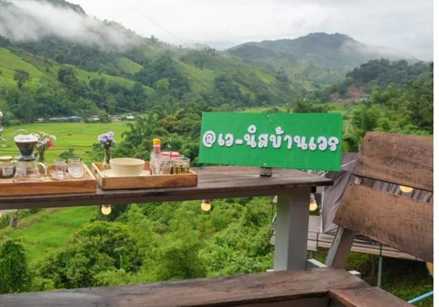 อีกหนึ่งความสวยงามแห่งการท่องเที่ยวนาฝน ชมวิวนาข้าวขั้นบันไดน ที่ยังคงมีความเป็นธรรมชาติ และเงียบสงบ ต้องยกให้นาข้าวบ้านเวร ที่ซ่อนตัวอยู่ในอำเภอบ่อเกลือ ไม่ไกลจากบ้านสะปันมากนัก สามารถชมวิวนาข้าวได้แบบกว้างไกล และสายหมอกบางในยามเช้า มีที่พักค่อนข้างสะดวกสบายหลายแห่ง เราเลือกพักที่ เวนิส บ้านเวร ซึ่งเป็นทั้งร้านกาแฟและที่พักในรูปแบบเต้นท์แคมปิ้ง วิวสุดปังมองเห็นวิวนาข้าวและภูเขาได้แบบกว้างไกล หากมาเที่ยวในช่วงฤดูฝนยังมีโอกาสได้ชมสายหมอกลอยคลอเคลียภูเขาได้ตลอดทั้งวัน