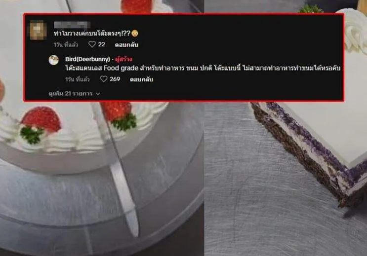 ดราม่า!! วางเค้กบนโต๊ะสแตนเลส โดยไม่มีอะไรรองก่อน