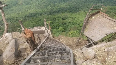 ทหารไทยยิงปืนใหญ่ถล่มกระเช้าขึ้นเนิน 350 ของเขมร เหลือแต่ซาก