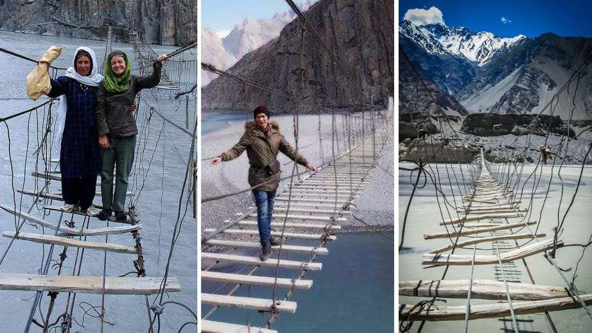 สะพานที่เราเห็นนี้ คือสะพานแขวน Hussaini เป็นสะพานแขวนเชือกที่มีชื่อเสียงด้านความอันตราย ตั้งอยู่ในหุบเขา Hunza ภูมิภาค Gilgit-Baltistan ทางตอนเหนือของปากีสถาน ครอบคลุมแม่น้ำ Hunza และเชื่อมต่อหมู่บ้าน Hussaini กับหมู่บ้าน Zarabad โดยข้ามทะเลสาบ Borith สะพานนี้มีความยาวประมาณ 500 ฟุต และสูงจากแม่น้ำ 635 ฟุต ทำให้เป็นสะพานที่ยาวที่สุดและอันตรายที่สุดแห่งหนึ่งของโลก