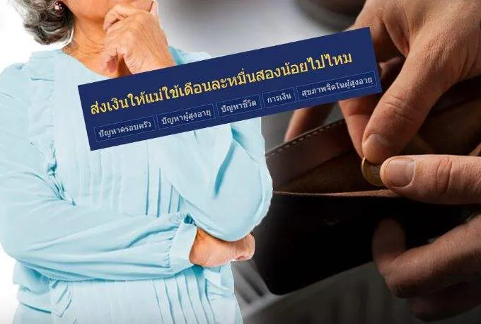 หนุ่มคนหนึ่งปรึกษาปัญหาครอบครัว ส่งเงินให้แม่ทุกเดือนแต่เงินกลับไม่เคยพอ เขาทำงานอยู่ที่กรุงเทพฯ ส่วนแม่อายุ 67 ปีอาศัยอยู่ที่บ้านคนเดียว เบื้องต้นแม่มีเงินเบี้ยเลี้ยงคนชรา เขาจึงส่งเงินให้แม่ใช้เดือนละ 12,000 บาท ไว้ใช้จ่ายเป็นค่าอาหาร ค่ายาต่าง ๆ ส่วนค่าน้ำค่าไฟ เขาจ่ายให้ต่างหาก