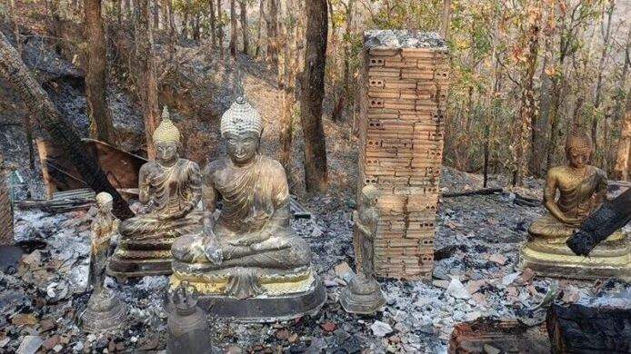 ลอบเผาป่า! ไฟลามไหม้สำนักสงฆ์วอด