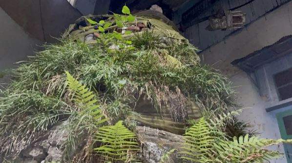 ศาลพระภูมิ ตุ๊กตานางรำ และเหล็กเส้นโผล่