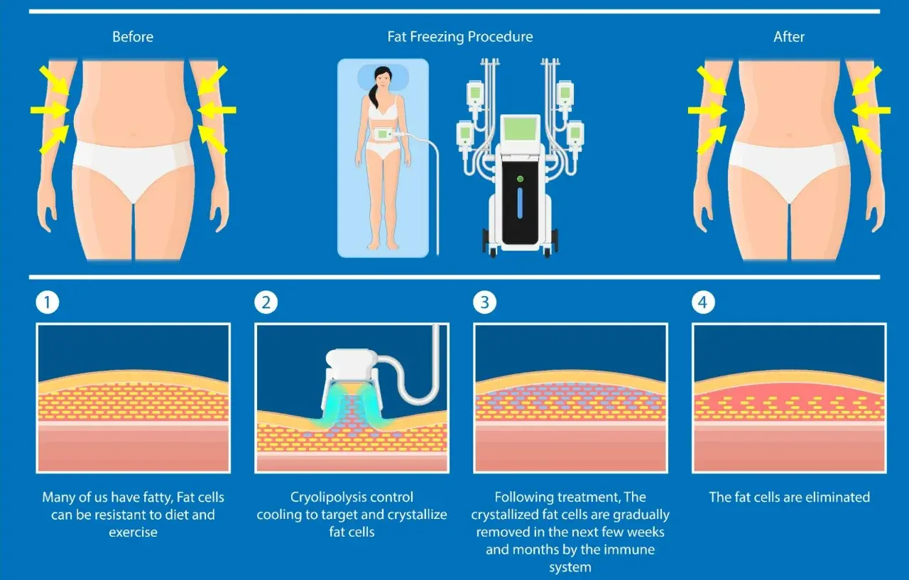 จากนั้นจะใช้เทคโนโลยีการทำความเย็นจัดประมาณ -11 องศาเซลเซียส เพื่อแช่แข็งเซลล์ไขมันในบริเวณนั้น
