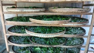 ในชั้นของกระด้ง วางเรียงชั้นอย่างเรียบร้อย เฝ้าเจ้าหนอนน้อยด้วยความสุข