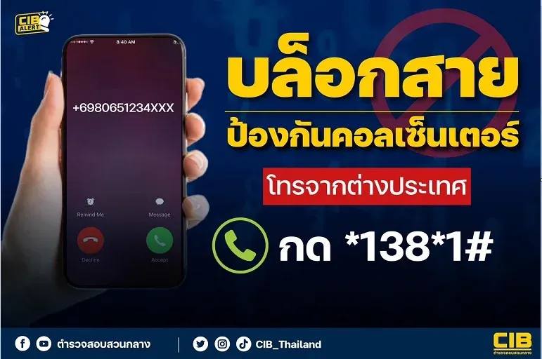 ทางตำรวจสอบสวนกลาง (CIB) ขอเตือนประชาชน แนวทางนี้เป็นหนึ่งในมาตรการป้องกันแก๊งคอลเซ็นเตอร์ อย่าหลงเชื่อบุคคลที่แอบอ้างว่าเป็นหน่วยงานต่างๆ ให้สอบถามชื่อ ตำแหน่ง หน่วยงาน และหนังสือราชการ และตรวจสอบข้อมูลว่าจริงหรือไม่ เพื่อป้องกันไม่ให้ตกเป็นเครื่องมือของแก๊งคอลเซ็นเตอร์ครับ