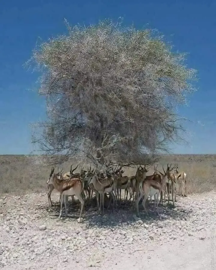 แถบทุ่งหญ้าแถบทะเลทรายแบบนี้ต้นไม้ยืนต้นเพียง 1 ต้นก็คือมีค่ามหาศาลต่อสิ่งมีชีวิตได้หลายๆอย่างเลยทีเดียว ท่ามกลางสภาพที่แห้งแล้งในทุ่งหญ้าสะวันนานั้น แม้ว่าจะเป็นสัตว์ป่าที่ทรหดอดทน มากยิ่งกว่ามนุษย์ปานใด การยืนรับแดดทั้งวัน ก็ไม่ไหวเช่นกัน อาจจะเกิดอาการ Heat Stork ตายได้เช่นเดียวกับ สุนัข และ แมวบ้านเราบางตัว ที่ตายเพราะความร้อนได้เช่นกันเน่อ ดังนั้นในทุ่งหญ้าสะวันนา นั้นต้นไม้เพียงต้นเดียวที่ให้ร่มเงา ก็เหมือนกับสวรรค์ของเหล่าสัตว์โลกมากมายที่ได้อาศัยอยู่ด้วยกันเพื่อหลบจากความร้อนตามธรรมชาตินั่นเอง