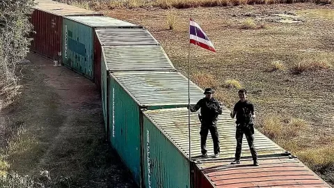 ภาพนี้ที่รอคอย !!! ทหารไทยนำตู้คอนเทนเนอร์ไปวางกั้นพรมแดนบ้านหนองจาน ตามเส้นเขตแดน 1:50000 เป็นที่เรียบร้อย