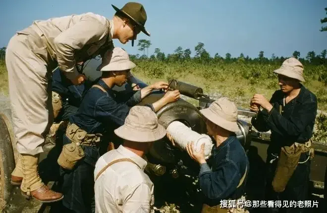 ทหารอเมริกันกำลังเข้ารับการฝึกที่ฐานฝึกทหารสหรัฐฯ ที่ป้อมแบรกก์ เมื่อปี 1942