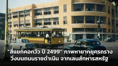 ย้อนวันวาน “สี่แยกคอกวัว” ปี 2499 เสน่ห์ถนนราชดำเนิน ยุครถรางแล่นเคียงรถยนต์ ภาพคลาสสิกจากเลนส์ทหารอเมริกัน