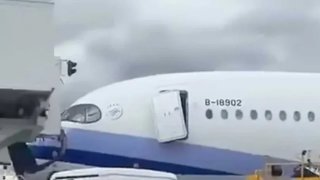 เที่ยวบินของสายการบินไชน่าแอร์ไลน์ถูกยกเลิกอย่างเร่งด่วนหลังจาก "ประตูห้องโดยสารถูกกระแทกจนเอียงโดยสะพานเทียบเครื่องบิน"