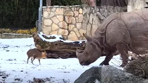 สวนสัตว์วในโปแลนด์เผยคลิป “เก้งตัวจ้อย” ท้าชน “แรดอินเดีย” แบบไม่กลัวเลย กลายเป็นไวรัลทั่วโลก