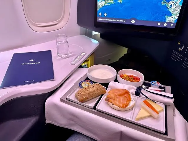 • Air France โดดเด่นในด้านการนำเสนออาหารฝรั่งเศสแบบต้นตำรับและเครื่องดื่มที่หลากหลาย โดยเฉพาะไวน์และแชมเปญที่คัดสรรมาจากแหล่งที่ดีที่สุดในฝรั่งเศส สายการบินนี้ยังมีการให้บริการเมนูอาหารที่ปรุงด้วยวัตถุดิบที่มีคุณภาพสูงและการนำเสนอที่สวยงาม