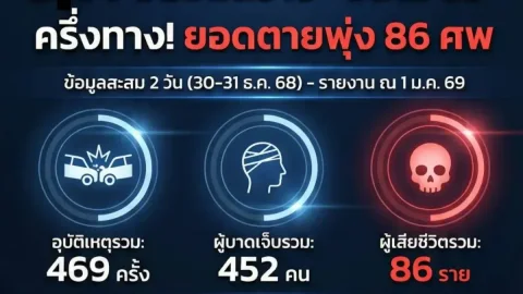 7 วันอันตราย ปีใหม่ 69 ผ่านมา 2 วัน ยอดดับ 86 ราย