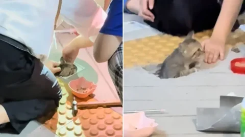 ชาวบ้านร่วมใจช่วยเหลือลูกแมวที่ติดอยู่ในท่อระบายน้ำ