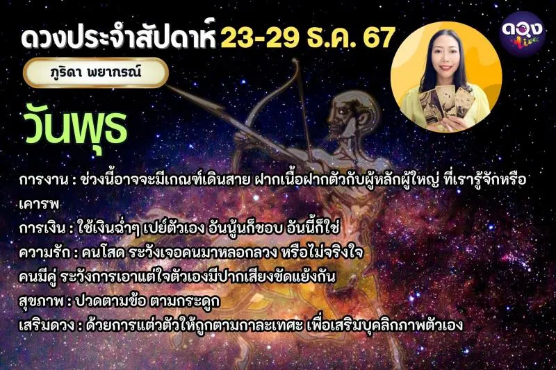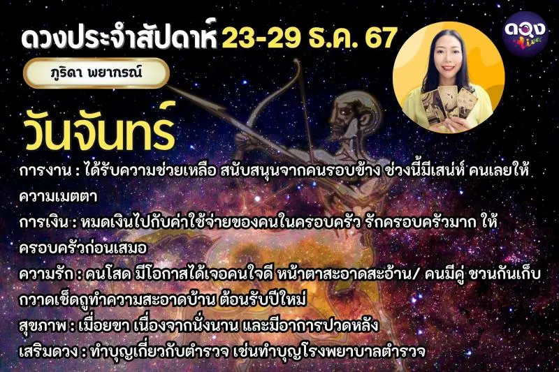ดวงประจำสัปดาห์ 23-29 ธ.ค. 67 by ภูริดา พยากรณ์