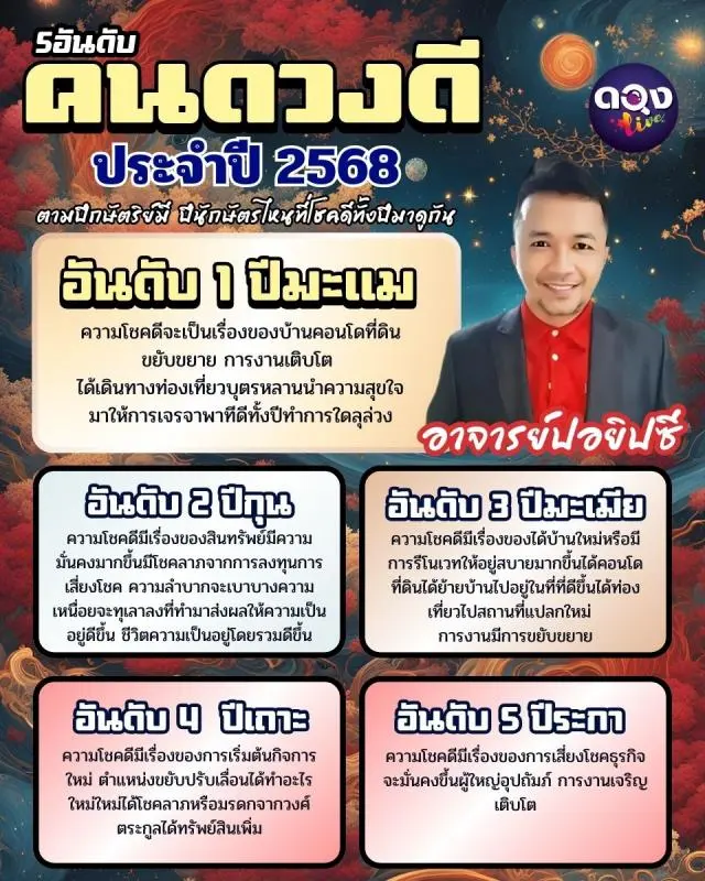 5 อันดับคนดวงดีประจำปี 2568 ตามปีกษัตริย์มี ปีนักษัตรไหนที่โชคดีทั้งปีมาดูกัน by อาจารย์ปอยิปซี