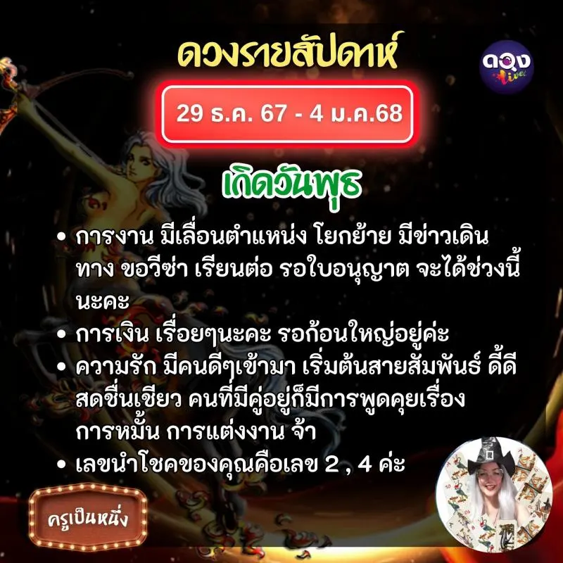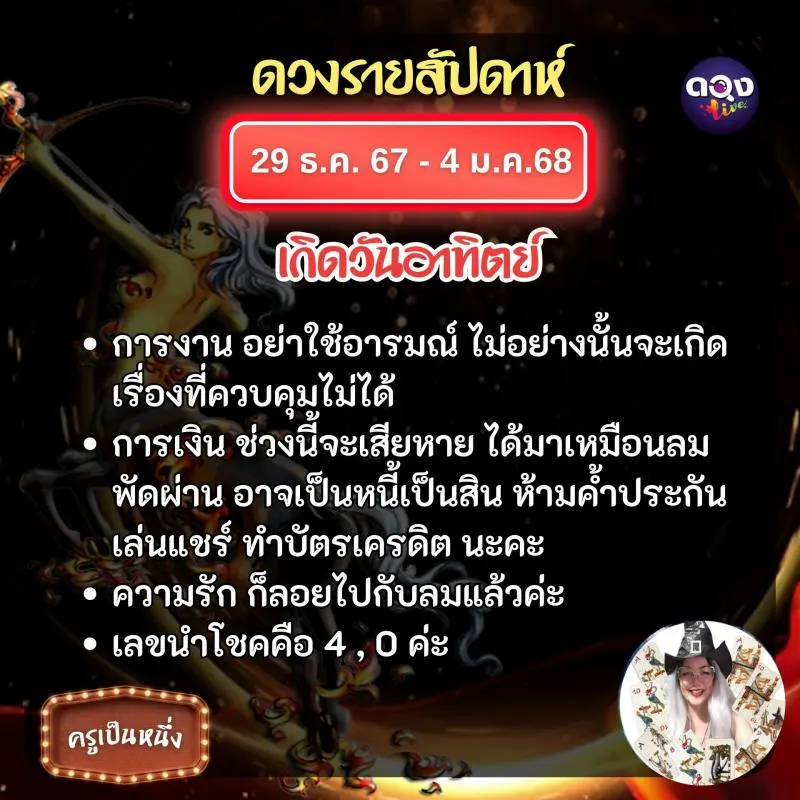 ดวงรายสัปดาห์ 29 ธ.ค. 67 - 4 ม.ค. 68 by ครูเป็นหนึ่ง