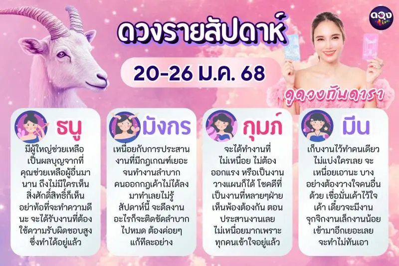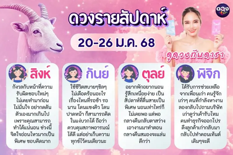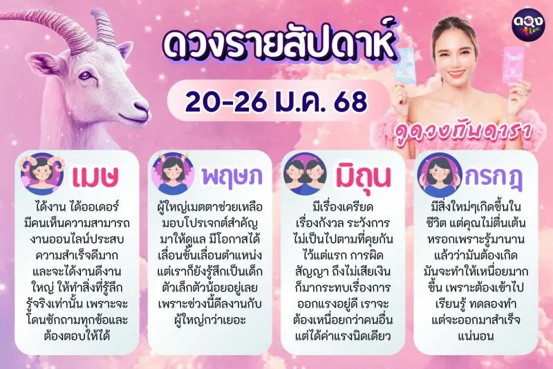 ดวงรายสัปดาห์ 20-26 มกราคม 2568 ดูดวงกับดารา
