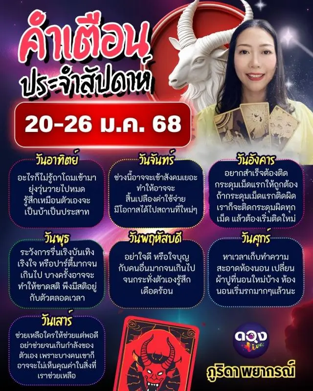 คำเตือนประจำสัปดาห์ 20-26 ม.ค. 68 by ภูริดา พยากรณ์