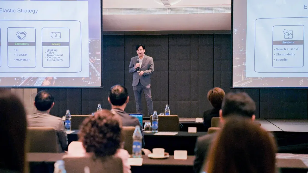 คุณธงชัย วัฒนโสภณวงศ์, Sales Director Indochina จาก Elastic บรรยายในหัวข้อ “Accelerate Incremental Business by Solving Your Customer’s Data Challenges” โดยชี้ให้เห็นว่า Elastic เป็นแพลตฟอร์มซึ่งช่วยบริหารจัดการข้อมูลโดยใช้ระบบ AI เป็นหัวใจหลัก มีความสามารถในการจัดเก็บ ค้นหา และคาดการณ์ Incident อย่างแม่นยำ ตอบโจทย์ความต้องการไม่ว่าจะเป็นระบบ AIOps / Observability, Cybersecurity รวมไปถึงการใช้งานด้าน GenAI/RAG ช่วยเสริมความสามารถขององค์กรในการขยายธุรกิจในหลายมิติ