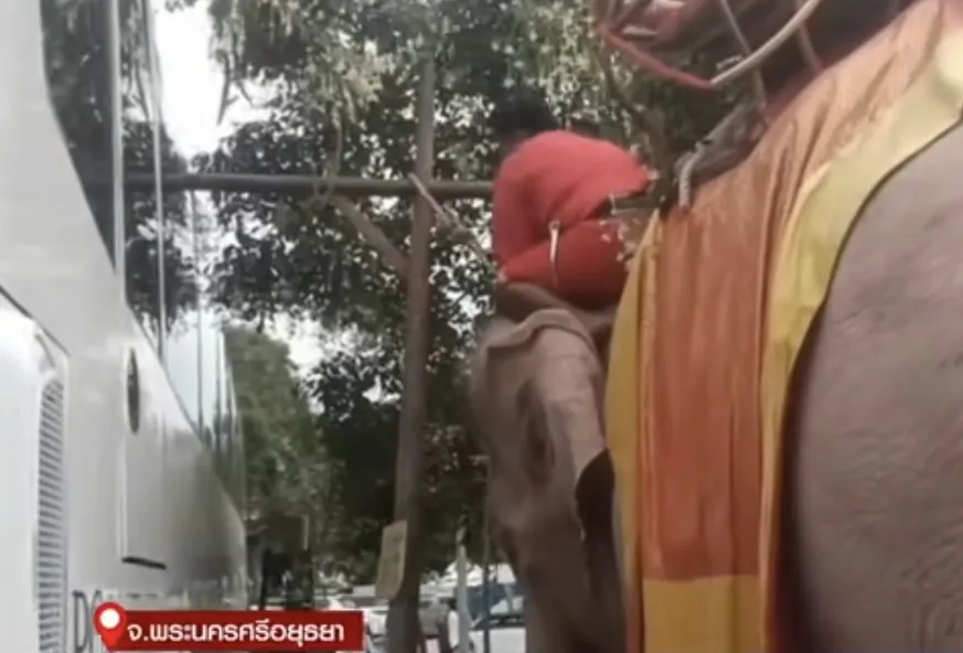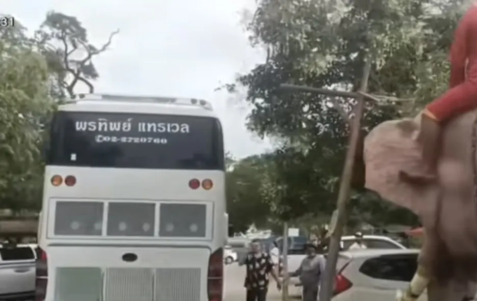 งานช้างของเเท้!! รถทัวร์นำเที่ยวชนแขนเหล็กเสาไฟทิ่มทะลุกระจก งานนี้ต้องขอให้ช้างช่วย 👍