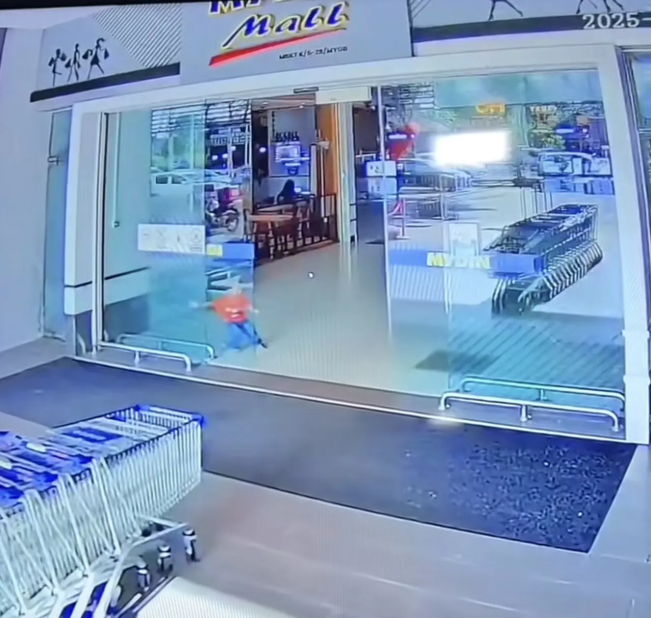 เหตุการณ์นี้เกิดขึ้นในมาเลเซีย เมื่อเด็กชายวัย 5-6 ขวบคนหนึ่ง พยายามหยุดประตูกระจกที่ปิดเปิดอัตโนมัติ ด้วยความที่เด็กน่าจะเข้าใจว่ามันกำลังปิดเลยไปดึงให้มันเปิด แต่ดันไปทำกระจกประตูแตก ดีที่เป็นกระจกนิรภัยเลยเเตกเป็นเศษละเอียด ไม่แน่ใจว่าเด็กได้รับบาดเจ็บอะไรหรือเปล่า แต่เห็นยังวิ่งได้หลังจากกระจกแตกน่าจะไม่เป็นอะไรมาก