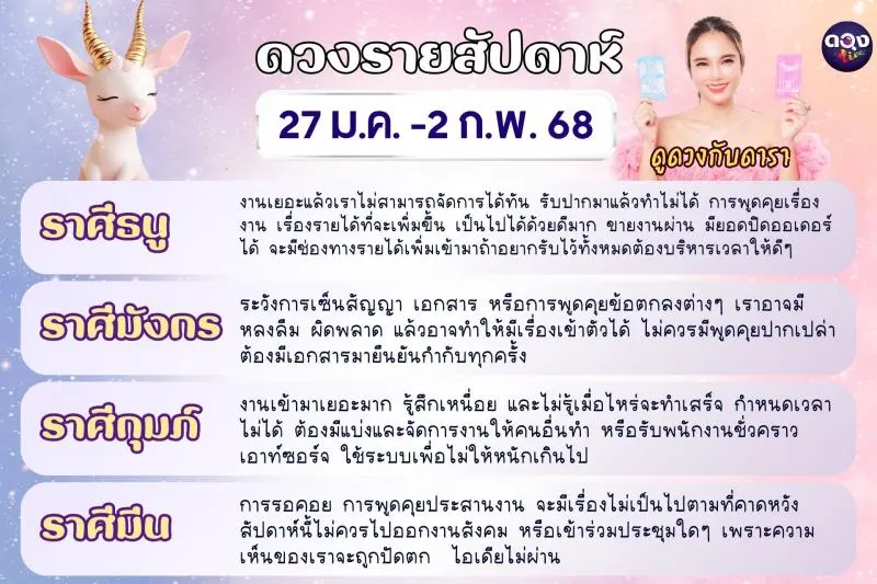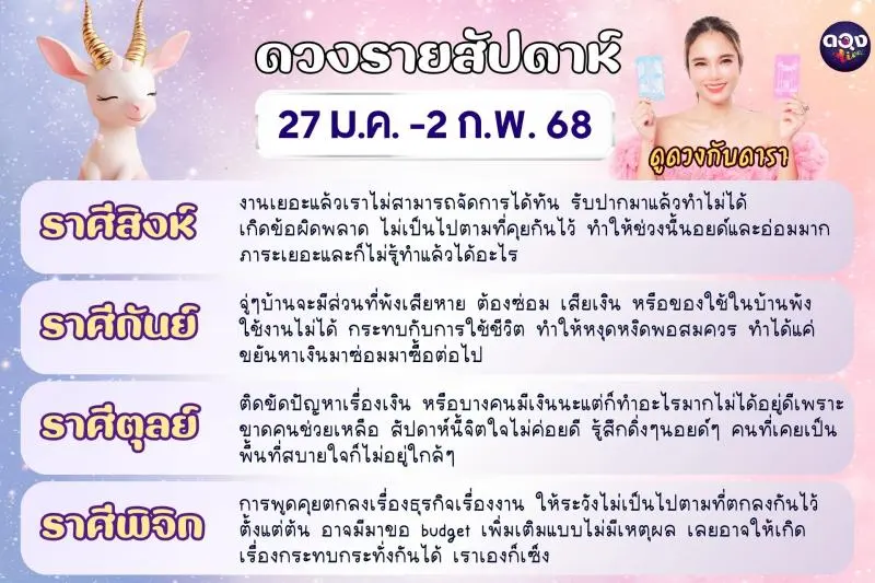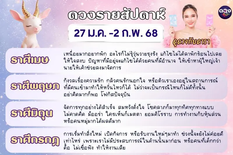 ดวงรายสัปดาห์ 27 มกราคม-2 กุมภาพันธ์ 2568 ดูดวงกับดารา