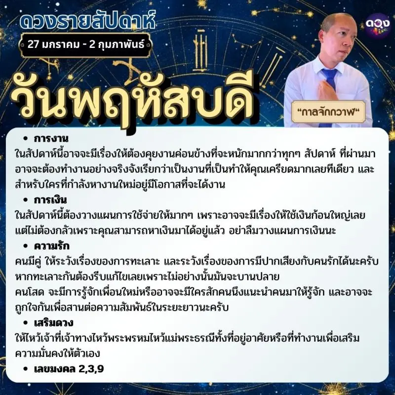 ดวงรายสัปดาห์ 27 มกราคม - 2 กุมภาพันธ์ by กาลจักกวาฬ