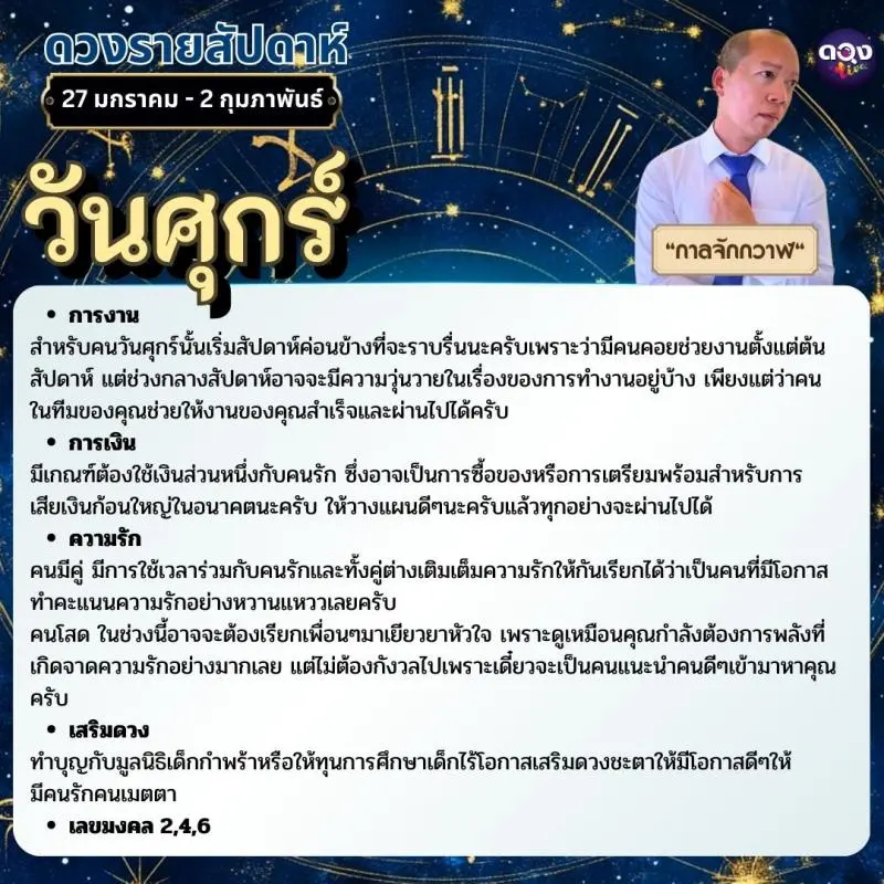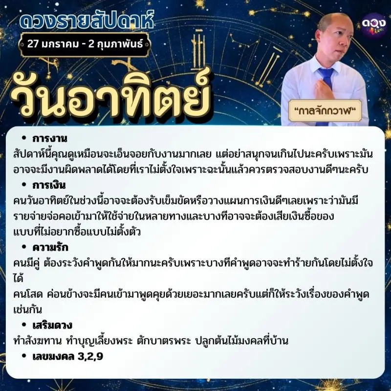 ดวงรายสัปดาห์ 27 มกราคม - 2 กุมภาพันธ์