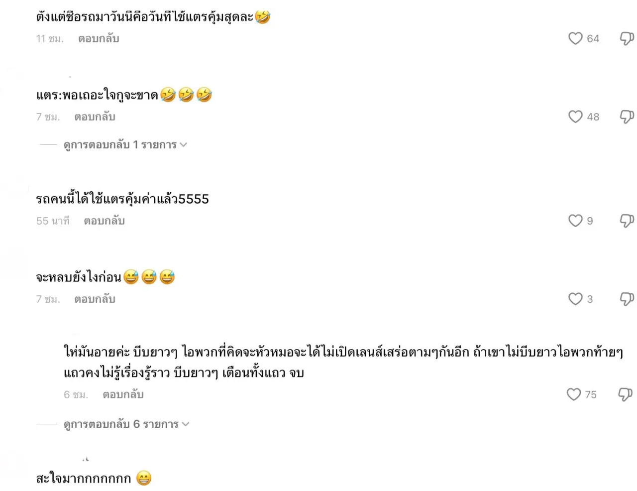 เจอแบบนี้บีบแตรยาวไปเลยจ้า เอาให้อาย หูแตกชั่งมัน🤣 ปกติคนไทยเซ้นสิทีฟต่อเสียงเเตรนักใช่มั้ย แตรรถก็เลยไม่เคยได้ใช้งานเต็มที่ งานนี้แตรคงได้ทำหน้าที่ของมันอย่างสุดความสามารถเเล้วสินะ