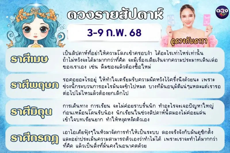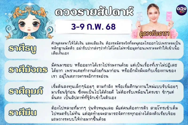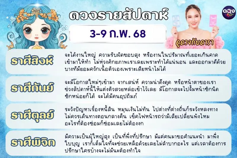 ดวงรายสัปดาห์ 3-9 กุมภาพันธ์ 2568 ดูดวงกับดารา