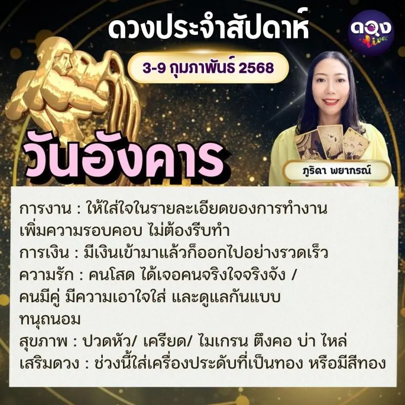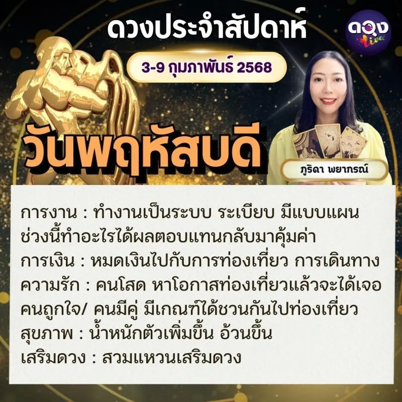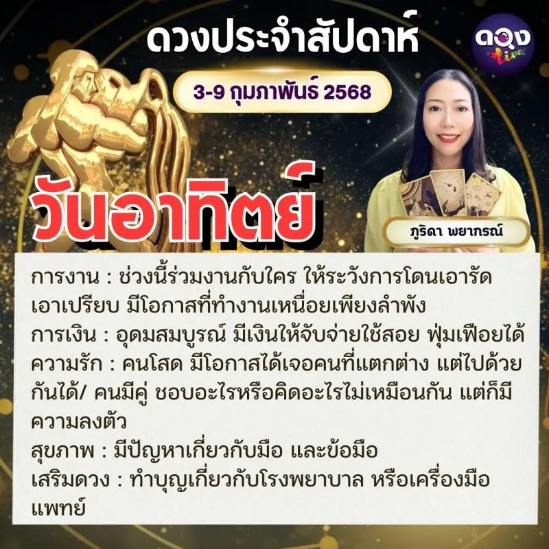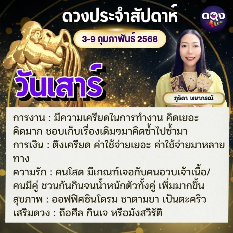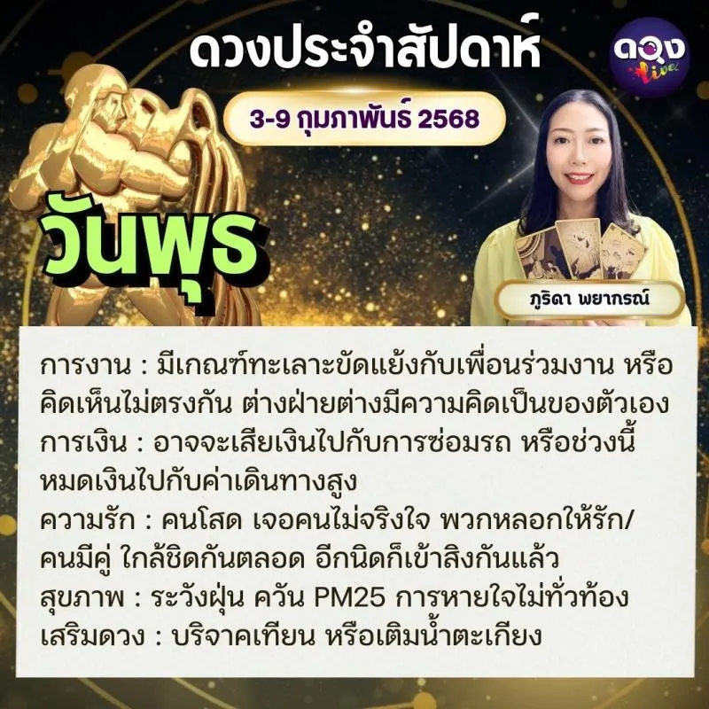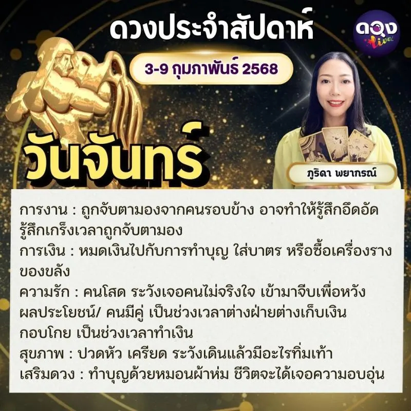 ดวงประจำสัปดาห์ 3-9 ก.พ. 68 by ภูริดา พยากรณ์