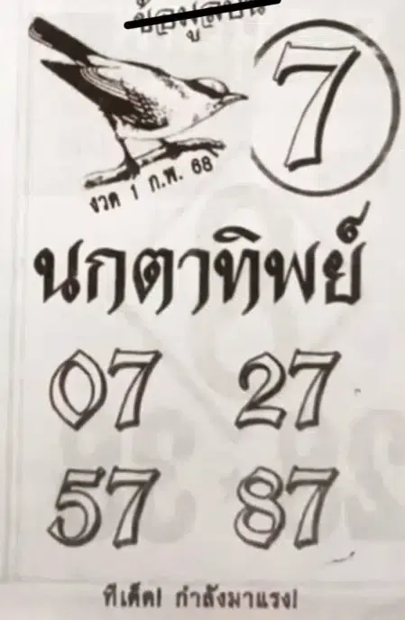 เลขเด็ดนกตาทิพย์งวดวันที่ 1 กุมภาพันธ์ 2568