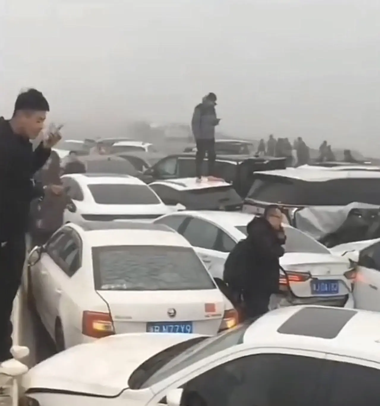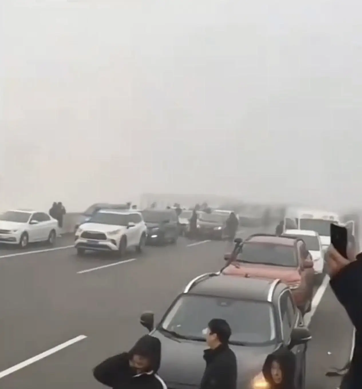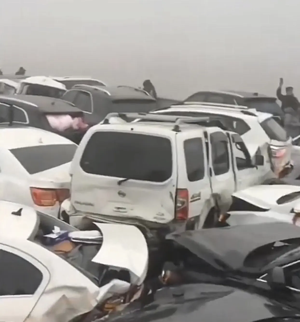 จีนเจอฝุ่นควันหนา มองทางไม่เห็น ทำรถชนวินาศสันตะโร