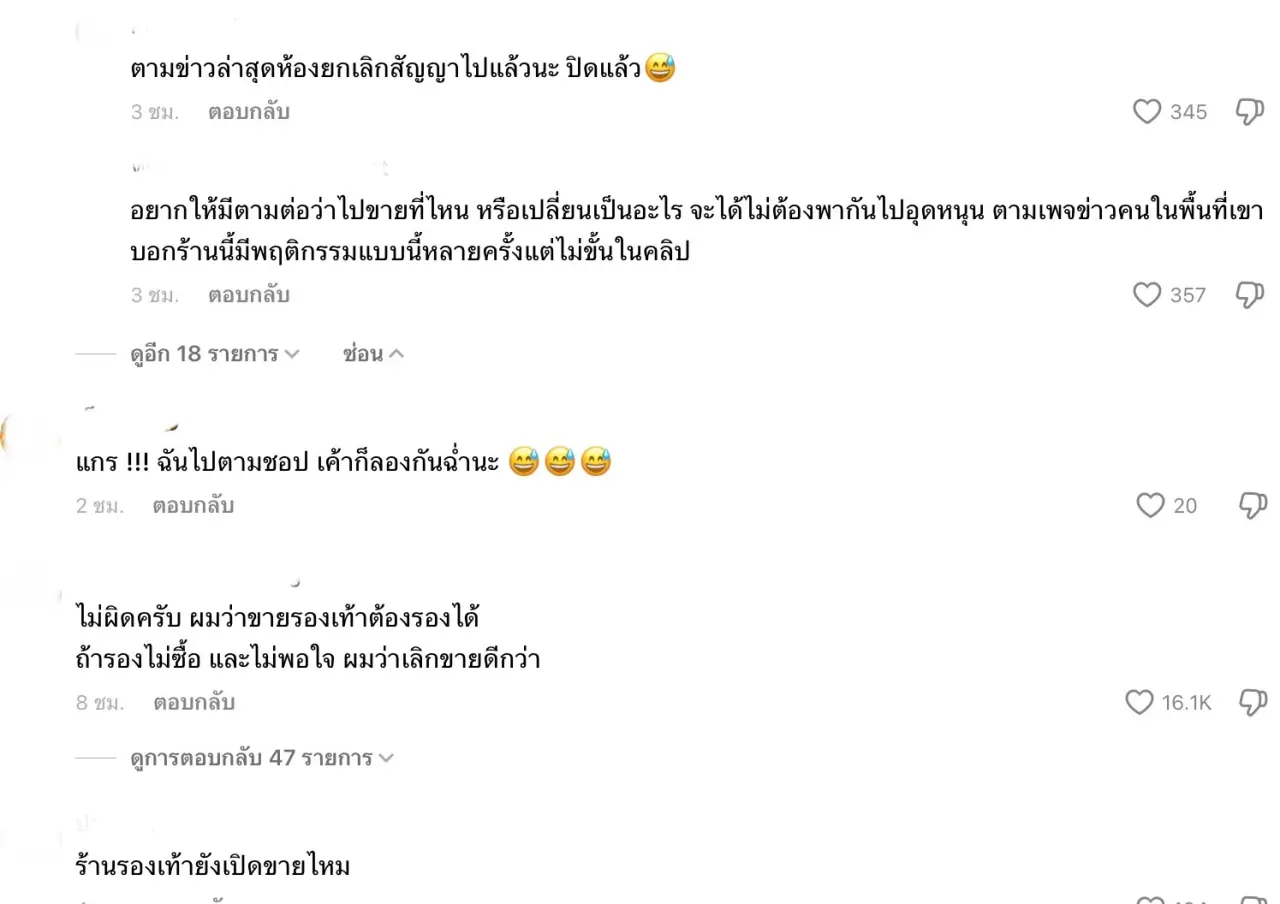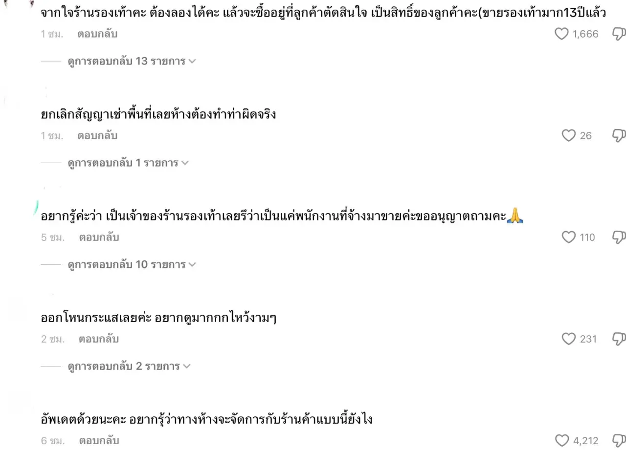 กรณีสาวพาลูกไปลองรองเท้าที่ร้านหนึ่งในห้าง แต่ไม่มีไซต์ เลยไม่ได้ซื้อ พร้อมขอบคุณเเละเดินออกจากร้าน แต่ของทางร้านไม่โอเค แม่ค้าไปเรียกแฟนหนุ่มมาเคลียร์ จนเกือบจะวางมวย ล่าสุดลูกค้าได้ชี้แจ้งผ่านช่องติ๊กต๊อกตามนี้เลยจ้า