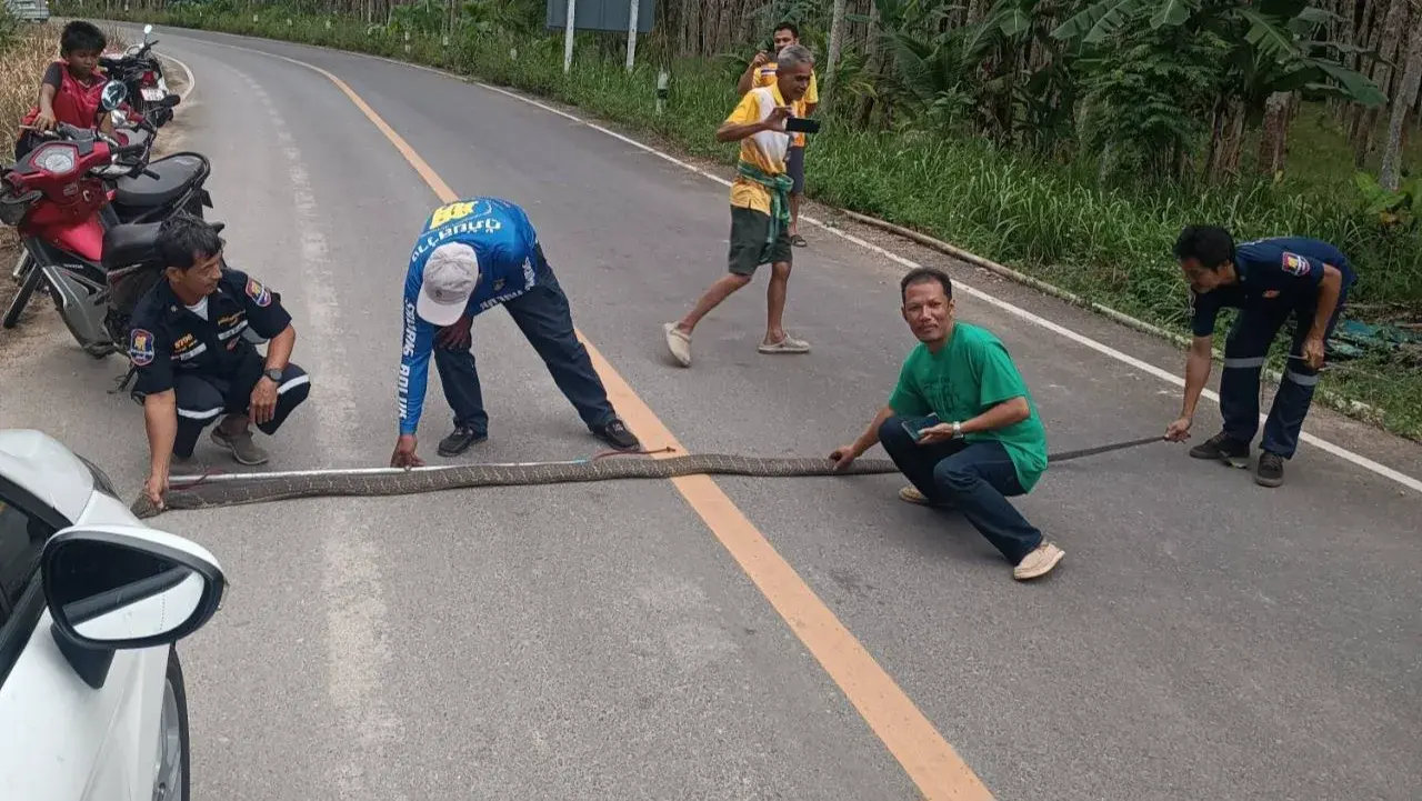 วันที่ 7 ก.พ.68 อาสากู้ชีพมูลนิธิกู้ภัยคลองยา ในข่ายสว่างการกุศลอ่าวลึก เข้าตรวจสอบที่บ้าน<span;>นายวาทิน แก้วสุวรรณ 54 ปี ในพื้นที่หมู่ 5 ต.คลองยา อ.อ่าวลึก จ.กระบี่ หลังรับแจ้งขอความช่วยเหลือจากเจ้าของบ้าน ว่ามีงูจงอางขนาดใหญ่ เลื้อยซุกบริเวณบ้าน