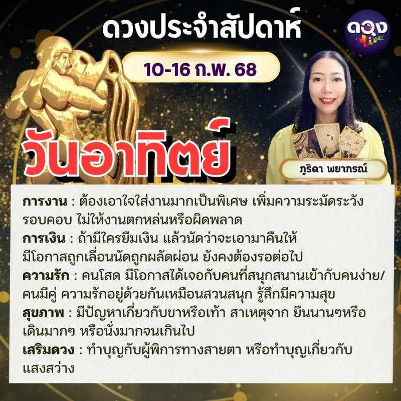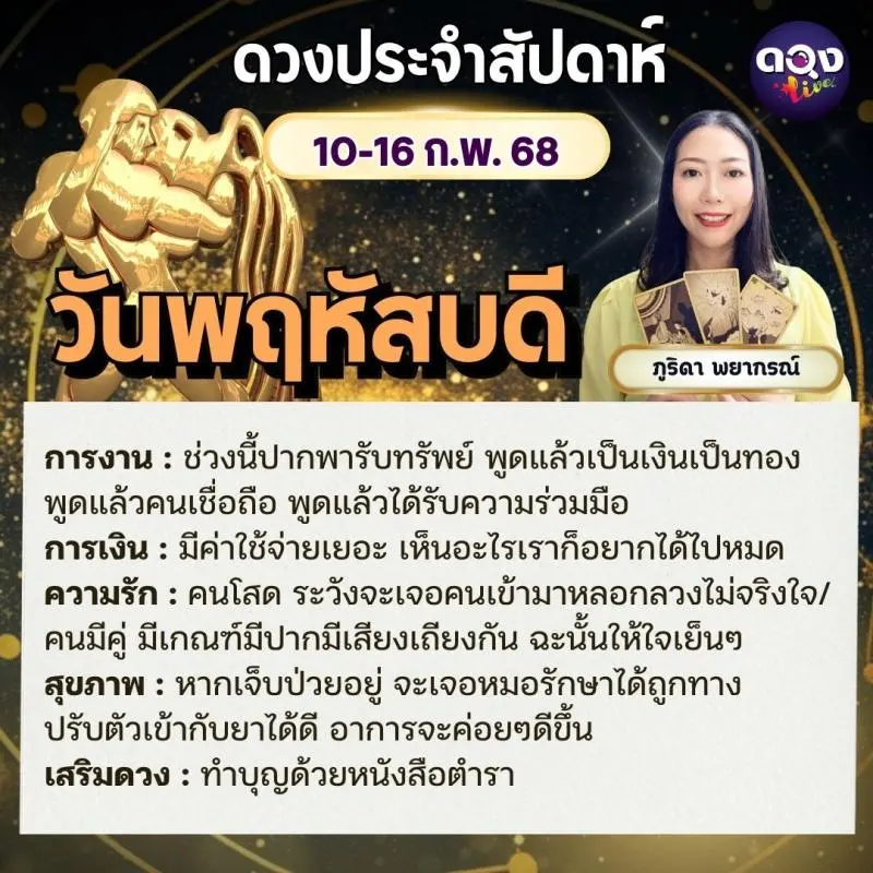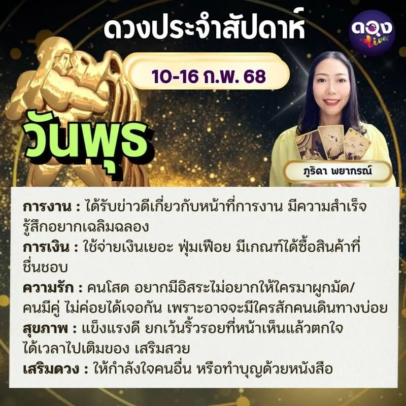 ดวงประจำสัปดาห์ 10-16 ก.พ. 68 by ภูริดา