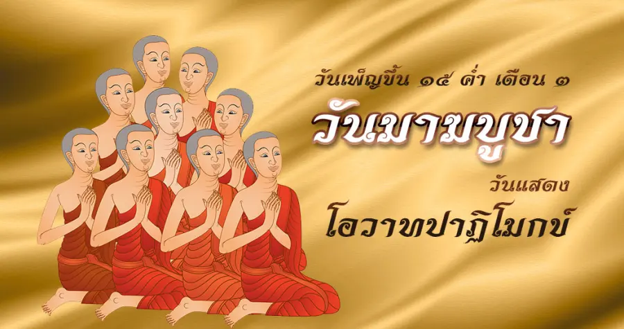 วันมาฆบูชา เป็นวันสำคัญทางพุทธศาสนา ตรงกับวันเพ็ญเดือน 3 ของทุกปี วันนี้เป็นวันที่พระพุทธเจ้าทรงแสดง "โอวาทปาติโมกข์" ซึ่งเป็นหลักคำสอนสำคัญให้กับพระภิกษุ 1,250 รูป ที่มาประชุมพร้อมกันโดยไม่ได้นัดหมายเลย ถือเป็นวันพิเศษสุด ๆ ของชาวพุทธเลยล่ะ!