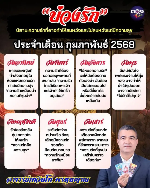 "บ่วงรัก" นิยาม: ความรักที่อาจทำให้สมหวังและไม่สมหวังแต่มีความสุข ประจำเดือน กุมภาพันธ์ 2568 อาจารย์เทวินโท พรหมญาณ