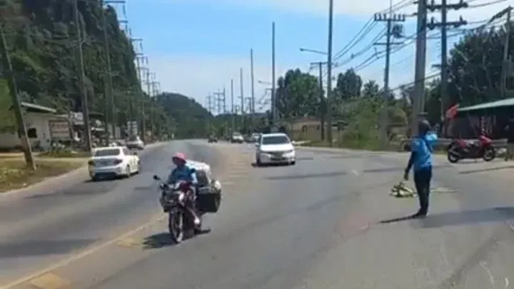 ขณะชาวบ้านที่ขับรถผ่านและเห็นเหตุการณ์ ต่างพากันถ่ายภาพโพสต์ลงโซเชี่ยลเพื่อแจ้งเตือนเหตุ บางหยุดรถคอยโบกเตือนให้รถจยย.ที่ผ่านมาเพิ่มความระมัดระวัง