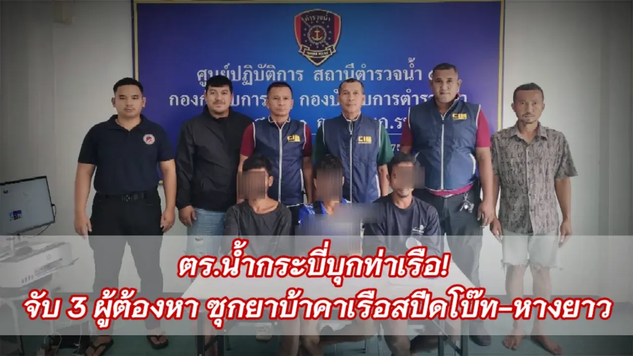 ตร.น้ำกระบี่บุกท่าเรือ! จับ 3 ผู้ต้องหา ซุกยาบ้าคาเรือสปีดโบ๊ท-หางยาว