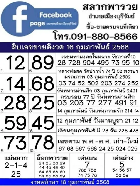 ส่องเลขเด็ด!! มัดรวม 10อันดับ เลขเด็ดขายดี 16 กุมภาพันธ์ 2568