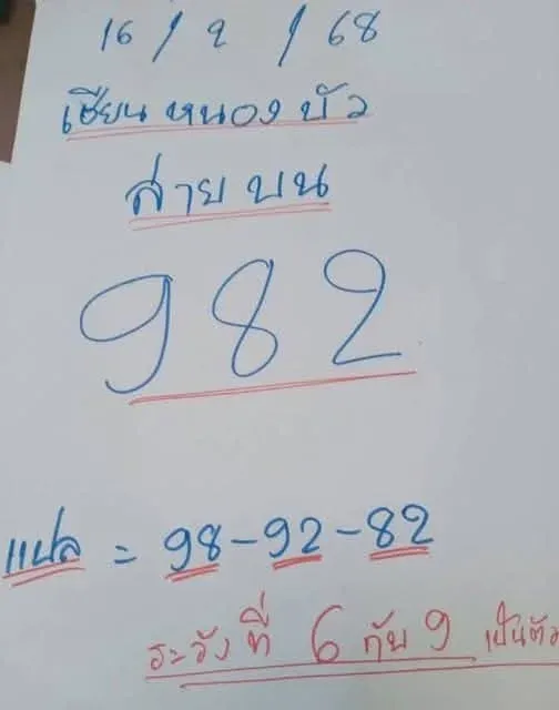 เลขเด็ดเซียนหนองบัว งวดวันที่ 16 กุมภาพันธ์ 2568