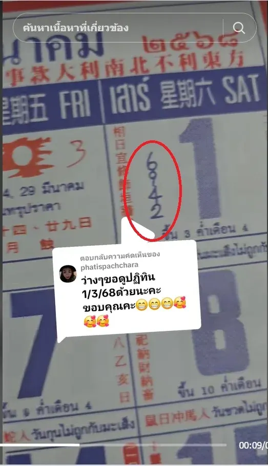 ล่าสุด ทางผู้ใช้ TikTok เจ้าเดิมที่ชื่อว่า nid8857 ก็ได้ออกมาแชร์เลขเด็ดจากปฏิทินจีน เพื่อใช้เป็นแนวทางในการซื้อลอตเตอรี่ให้กับคนรักตัวเลขทั้งหลาย นำเอาไปลุ้นรวยกัน ในงวดวันที่ 1 มีนาคม 68 ที่ใกล้จะถึงนี้ โดยเป็นตัวเลขจากปฏิทินจีน 4 ฉบับ ที่ต้องเอาไปส่องไปซูม ไปลุ้นกันเอาเองว่าเป็นเลขอะไรบ้าง ตาใครตามันถ้าโชคดีก็เห็นเป็นเลขที่จะออกในงวดนี้อย่างแน่นอน