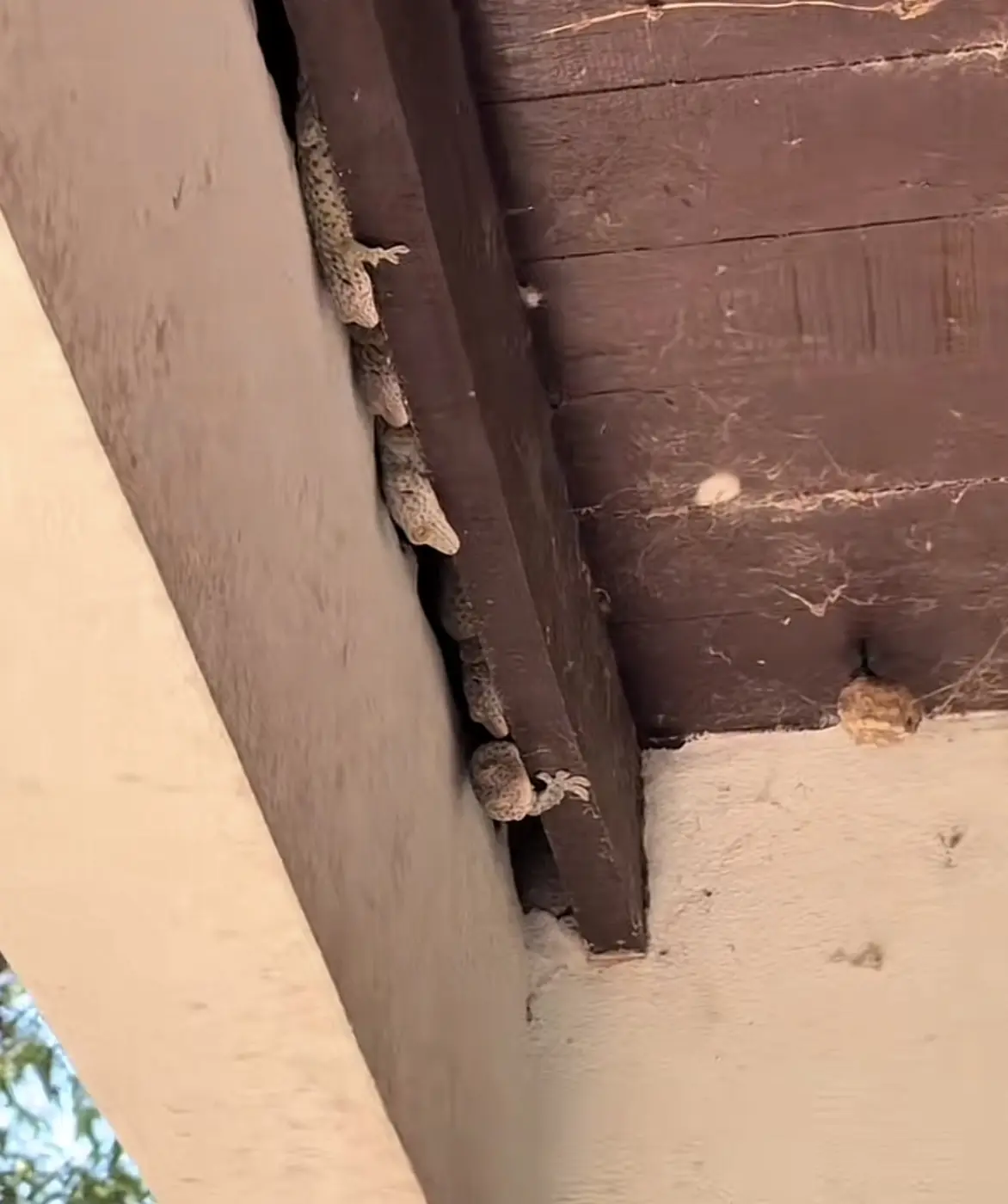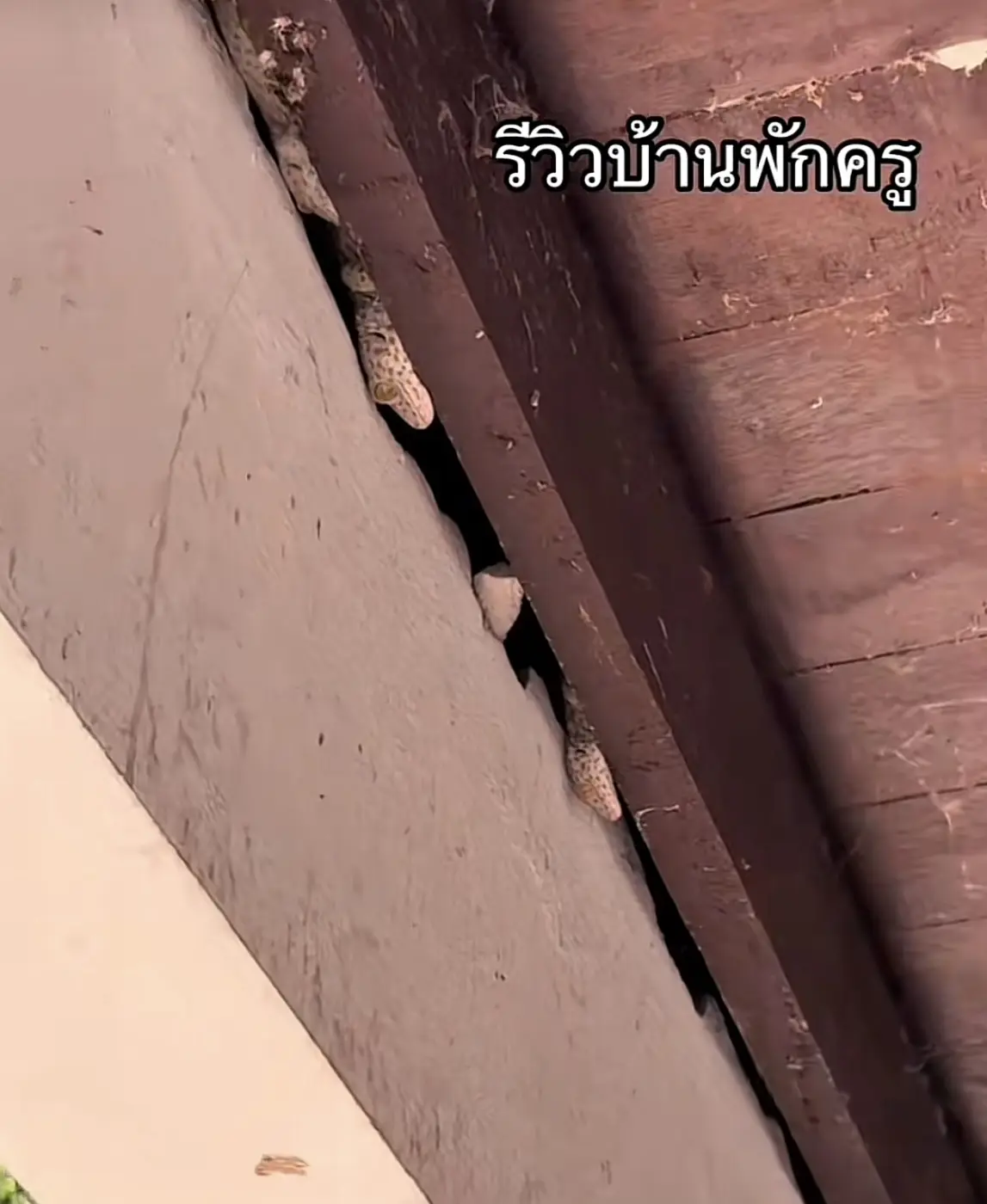 คุณพระ!! คุณสามเณร!! ตุ๊กแกเป็นสิบตัวอยู่ในซอกไม้ โอ้ย!! ขนหัวลุกไปหมดแล้ว นี่แค่จุดเดียวของบ้านยังขนาดนี้ ทั้งบ้านมันจะขนาดไหนกัน บ้านนี้ตุ๊กแกครองแล้วแหละ คนกลัวตุ๊กแกแค่เห็นก็น้ำตาจะไหนแล้ว ถ้าเจอเข้ากับตัวมีช็อกบอกเลย 🤣