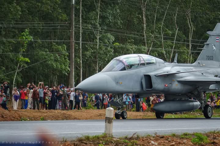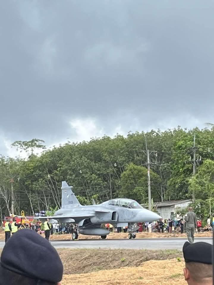 ชาวลาวทึ่งถนนไทยโคตรดี เครื่องบินกริพเพนลงจอดได้สบาย จากการที่กองทัพอากาศไทยได้มีการทดสอบการบินขึ้นลงของเครื่องบินขับไล่แจ๊ส 39 กริพเพนบนถนนหลวงหมายเลข 4287 ในจังหวัดสงขลา